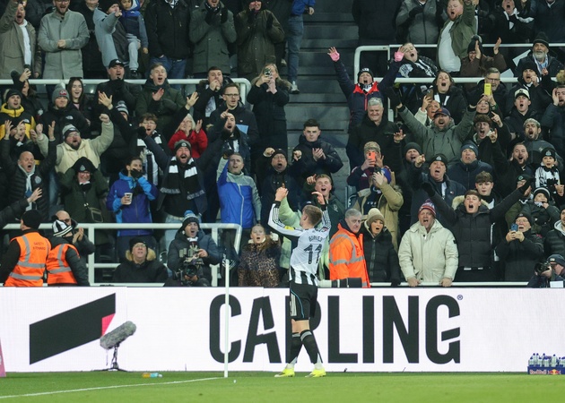 Harvey Barnes of Newcastle United celebrates his goal to make it 1-0 during the Emirates FA Cup Third Round match Newcastle United vs Bournemouth at St. James's Park, Newcastle, United Kingdom, 10th January 2026, Credit:Richard Bierton/News Images / Avalon