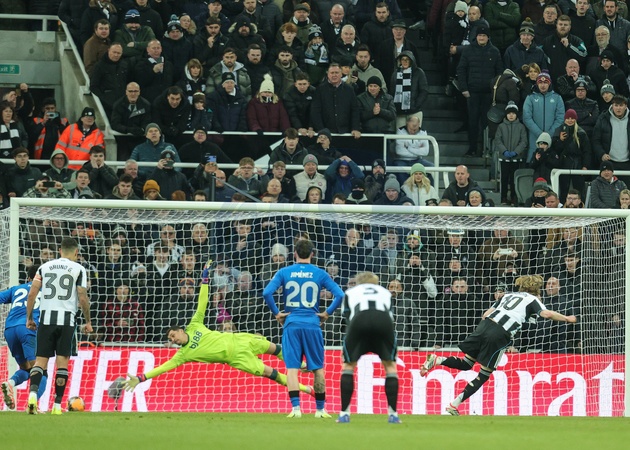 Anthony Gordon of Newcastle United scores a penalty to make it 2-2 during the Emirates FA Cup Third Round match Newcastle United vs Bournemouth at St. James's Park, Newcastle, United Kingdom, 10th January 2026, Credit:Richard Bierton/News Images / Avalon
