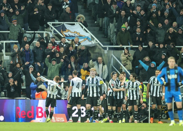 Harvey Barnes of Newcastle United celebrates his goal to make it 3-2 during the Emirates FA Cup Third Round match Newcastle United vs Bournemouth at St. James's Park, Newcastle, United Kingdom, 10th January 2026, Credit:Richard Bierton/News Images / Avalon