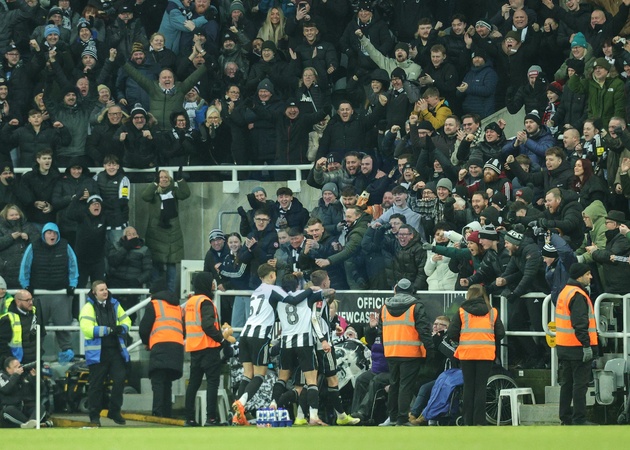 Harvey Barnes of Newcastle United celebrates his goal to make it 3-2 during the Emirates FA Cup Third Round match Newcastle United vs Bournemouth at St. James's Park, Newcastle, United Kingdom, 10th January 2026, Credit:Richard Bierton/News Images / Avalon