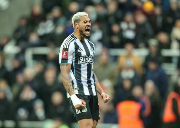 Joelinton of Newcastle United celebrates scoring his penalty in the shootout during the Emirates FA Cup Third Round match Newcastle United vs Bournemouth at St. James's Park, Newcastle, United Kingdom, 10th January 2026, Credit:Richard Bierton/News Images / Avalon
