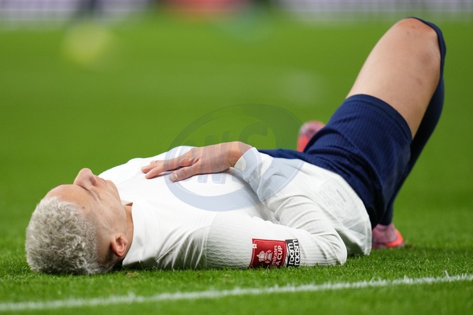 Richarlison of Tottenham Hotspur goes down injured during the Emirates FA Cup Third Round match Tottenham Hotspur vs Aston Villa at Tottenham Hotspur Stadium, London, United Kingdom, 10th January 2026, Credit:Harvey Murphy/News Images / Avalon