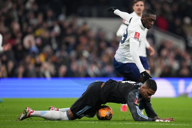 Randal Kolo Muani of Tottenham Hotspur fouls Ezri Konsa of Aston Villa during the Emirates FA Cup Third Round match Tottenham Hotspur vs Aston Villa at Tottenham Hotspur Stadium, London, United Kingdom, 10th January 2026, Credit:Harvey Murphy/News Images / Avalon