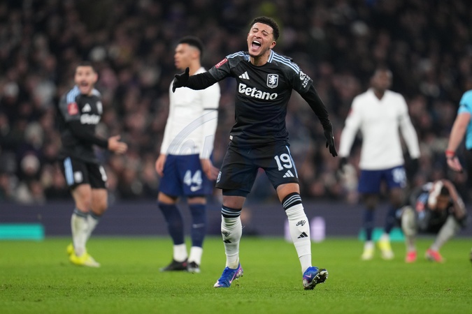 Jadon Sancho of Aston Villa shows frustration during the Emirates FA Cup Third Round match Tottenham Hotspur vs Aston Villa at Tottenham Hotspur Stadium, London, United Kingdom, 10th January 2026, Credit:Harvey Murphy/News Images / Avalon