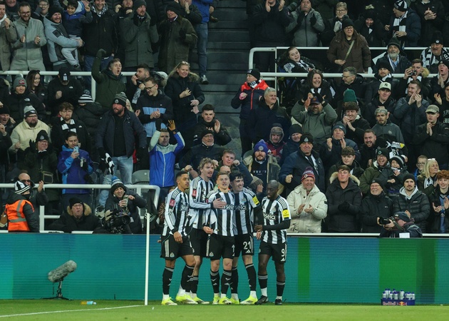 Harvey Barnes of Newcastle United celebrates his goal to make it 1-0 during the Emirates FA Cup Third Round match Newcastle United vs Bournemouth at St. James's Park, Newcastle, United Kingdom, 10th January 2026, Credit:Richard Bierton/News Images / Avalon