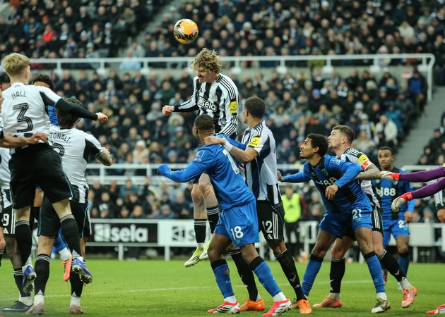Nick Woltemade of Newcastle United jumps up to win the high ball during the Emirates FA Cup Third Round match Newcastle United vs Bournemouth at St. James's Park, Newcastle, United Kingdom, 10th January 2026, Credit:Richard Bierton/News Images / Avalon