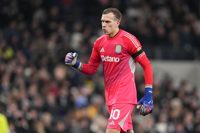 Marco Bizot of Aston Villa celebrates teams first goal during the Emirates FA Cup Third Round match Tottenham Hotspur vs Aston Villa at Tottenham Hotspur Stadium, London, United Kingdom, 10th January 2026, Credit:Harvey Murphy/News Images / Avalon