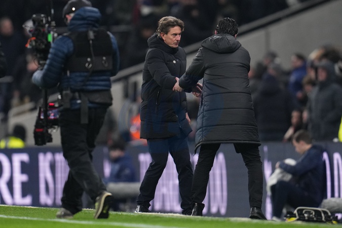 Thomas Frank manager of Tottenham Hotspur and Unai Emery manager of Aston Villa shake hands at full time during the Emirates FA Cup Third Round match Tottenham Hotspur vs Aston Villa at Tottenham Hotspur Stadium, London, United Kingdom, 10th January 2026, Credit:Harvey Murphy/News Images / Avalon