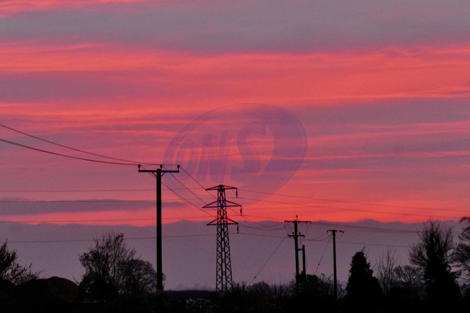 Pretty pink skies at dawn on a cold and frosty morning in the countryside., Credit:Geoffrey Swaine / Avalon