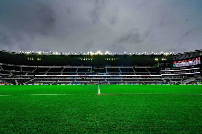 A ground shot showing the pitch during the Emirates FA Cup Third Round match Derby County vs Leeds United at Pride Park Stadium, Derby, United Kingdom, 11th January 2026, Credit:Maynard Manyowa/News Images / Avalon