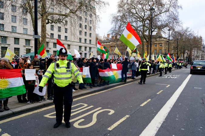 Kurdish protest. Downing Street, London. Saturday 10th January 2025.