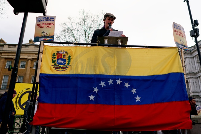 The protest took place in response to the US attack on Venezuela. It was a peaceful protest attended by various speakers including Diane Abbott., Credit:Aldo Ciarrocchi / Avalon