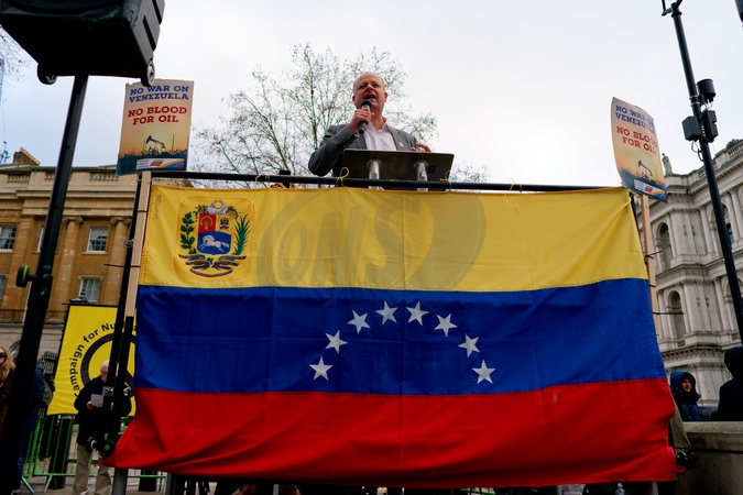 The protest took place in response to the US attack on Venezuela. It was a peaceful protest attended by various speakers including Diane Abbott., Credit:Aldo Ciarrocchi / Avalon