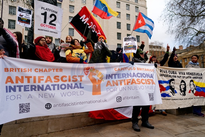 The protest took place in response to the US attack on Venezuela. It was a peaceful protest attended by various speakers including Diane Abbott., Credit:Aldo Ciarrocchi / Avalon