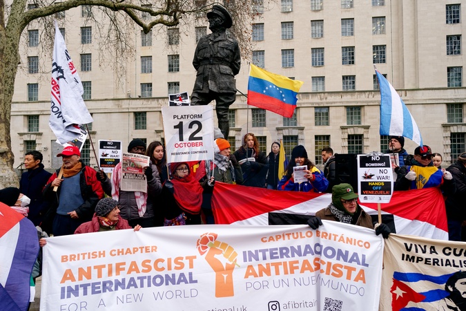The protest took place in response to the US attack on Venezuela. It was a peaceful protest attended by various speakers including Diane Abbott., Credit:Aldo Ciarrocchi / Avalon