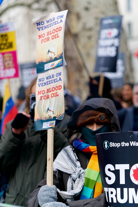 The protest took place in response to the US attack on Venezuela. It was a peaceful protest attended by various speakers including Diane Abbott., Credit:Aldo Ciarrocchi / Avalon