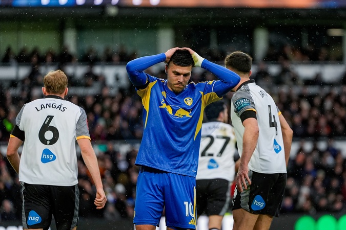 Joël Piroe of Leeds United reacts after a missed chance on goal during the Emirates FA Cup Third Round match Derby County vs Leeds United at Pride Park Stadium, Derby, United Kingdom, 11th January 2026, Credit:Maynard Manyowa/News Images / Avalon