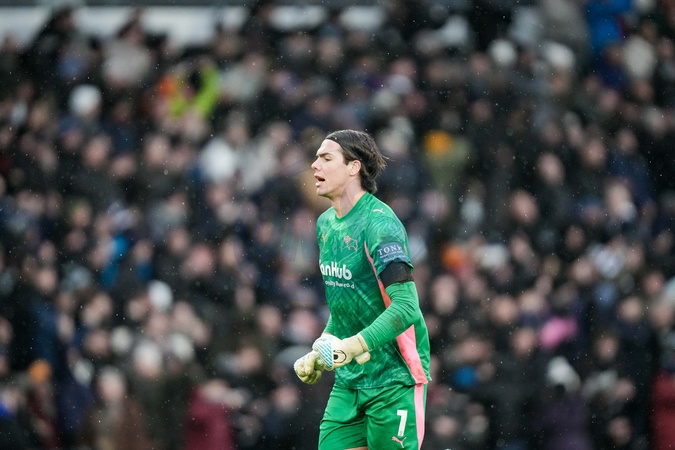 Derby County goalkeeper Jacob Widell Zetterstrom celebrates his team goal to make it 1-0 during the Emirates FA Cup Third Round match Derby County vs Leeds United at Pride Park Stadium, Derby, United Kingdom, 11th January 2026, Credit:Maynard Manyowa/News Images / Avalon