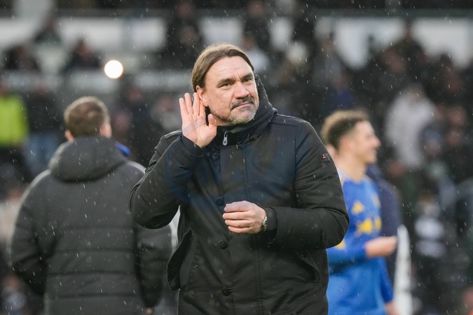 Leeds United manager Daniel Farke applauds the fans after the final whistle during the Emirates FA Cup Third Round match Derby County vs Leeds United at Pride Park Stadium, Derby, United Kingdom, 11th January 2026, Credit:Maynard Manyowa/News Images / Avalon