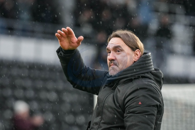Leeds United manager Daniel Farke applauds the fans after the final whistle during the Emirates FA Cup Third Round match Derby County vs Leeds United at Pride Park Stadium, Derby, United Kingdom, 11th January 2026, Credit:Maynard Manyowa/News Images / Avalon