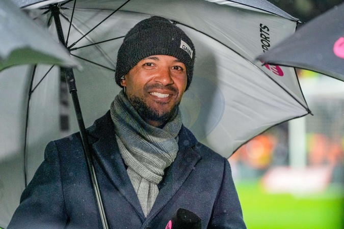 Former Leeds United player Jermaine Beckford as a pundit on TNT Sports during the Emirates FA Cup Third Round match Derby County vs Leeds United at Pride Park Stadium, Derby, United Kingdom, 11th January 2026, Credit:Maynard Manyowa/News Images / Avalon