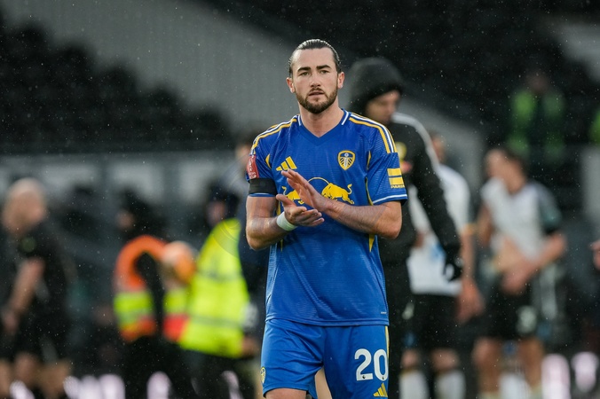 Jack Harrison of Leeds United applauds the fans after the final whistle during the Emirates FA Cup Third Round match Derby County vs Leeds United at Pride Park Stadium, Derby, United Kingdom, 11th January 2026, Credit:Maynard Manyowa/News Images / Avalon