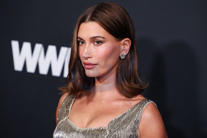 SANTA MONICA, LOS ANGELES, CALIFORNIA, USA - JANUARY 09: American model, entrepreneur, and television personality Hailey Baldwin Bieber wearing an Armani dress arrives at the 2026 2nd Annual WWD (Women's Wear Daily) Style Awards, Golden Globes presented by Amazon Beauty, Donna Karan New York, Glamsquad, IHG Hotels and Resorts, and Moet and Chandon held at the Regent Santa Monica Beach on January 9, 2025 in Santa Monica, Los Angeles, California, United States., Credit:Xavier Collin / Avalon