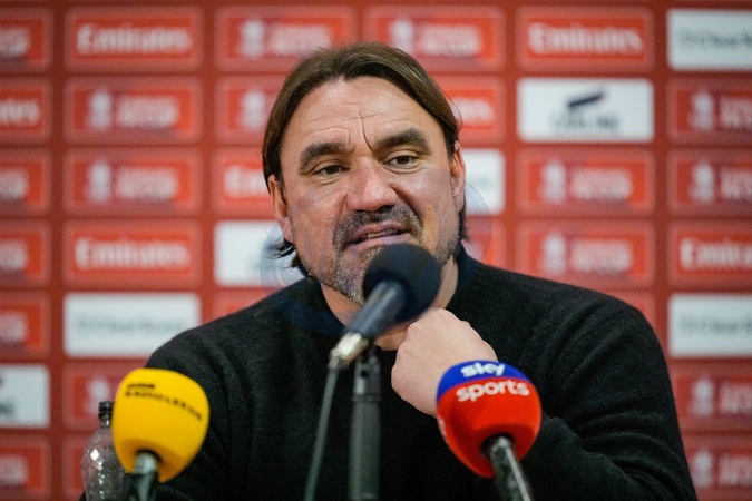 Leeds United manager Daniel Farke in the manager post match press conference during the Emirates FA Cup Third Round match Derby County vs Leeds United at Pride Park Stadium, Derby, United Kingdom, 11th January 2026, Credit:Maynard Manyowa/News Images / Avalon