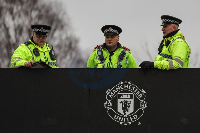 Greater Manchester Police officers look over the fans arriving at Old Trafford during the Emirates FA Cup Third Round match Manchester United vs Brighton and Hove Albion at Old Trafford, Manchester, United Kingdom, 11th January 2026, Credit:Mark Cosgrove/News Images / Avalon