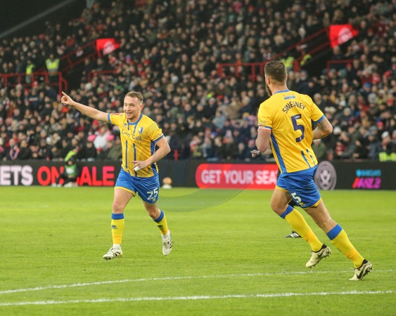 Louis Reed of Mansfield Town celebrates his goal to make it 0-1 during the Emirates FA Cup Third Round match Sheffield United vs Mansfield Town at Bramall Lane, Sheffield, United Kingdom, 11th January 2026, Credit:Richard Bierton/News Images / Avalon