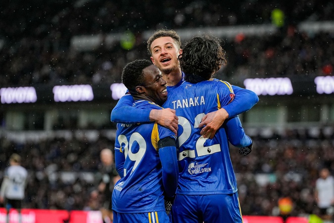 Ao Tanaka of Leeds United celebrates his goal to make it 1-2 during the Emirates FA Cup Third Round match Derby County vs Leeds United at Pride Park Stadium, Derby, United Kingdom, 11th January 2026, Credit:Maynard Manyowa/News Images / Avalon