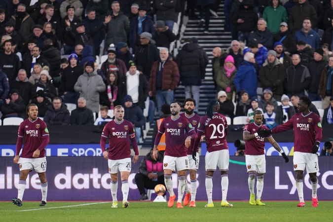 West Ham players celebrate 1-0 lead during the Emirates FA Cup Third Round match West Ham United vs Queens Park Rangers at London Stadium, London, United Kingdom, 11th January 2026, Credit:Harvey Murphy/News Images / Avalon