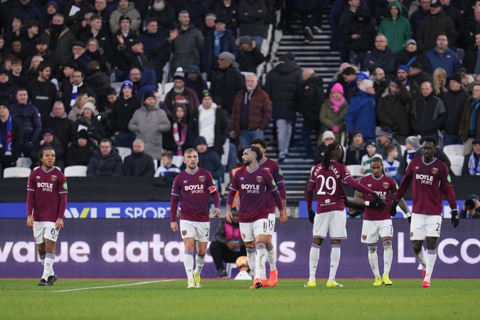 West Ham players celebrate 1-0 lead during the Emirates FA Cup Third Round match West Ham United vs Queens Park Rangers at London Stadium, London, United Kingdom, 11th January 2026, Credit:Harvey Murphy/News Images / Avalon