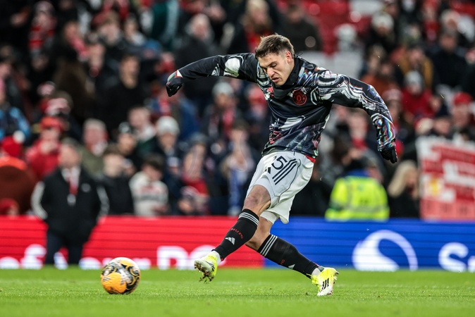Manuel Ugarte of Manchester Untied in the pregame warmup session during the Emirates FA Cup Third Round match Manchester United vs Brighton and Hove Albion at Old Trafford, Manchester, United Kingdom, 11th January 2026, Credit:Mark Cosgrove/News Images / Avalon