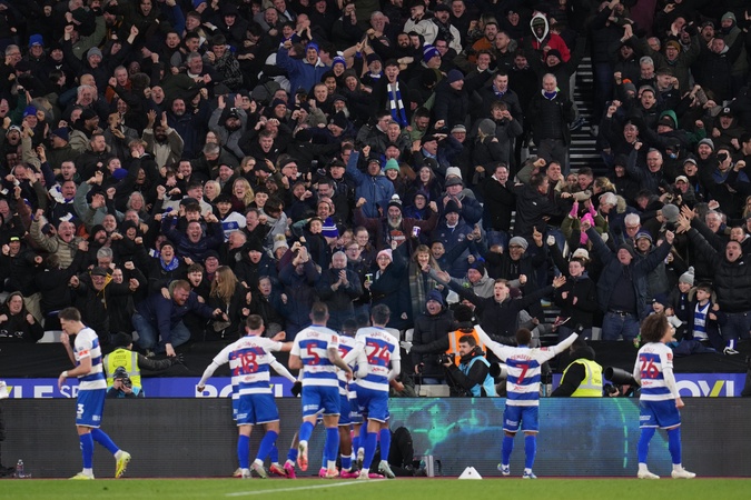 Queens Park Rangers fans celebrates teams equaliser during the Emirates FA Cup Third Round match West Ham United vs Queens Park Rangers at London Stadium, London, United Kingdom, 11th January 2026, Credit:Harvey Murphy/News Images / Avalon