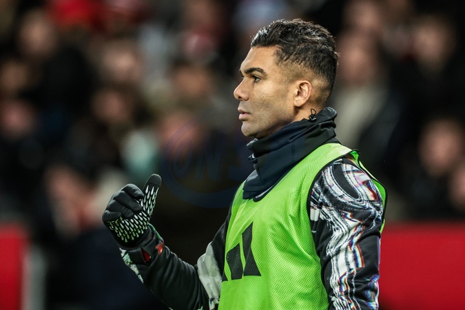 Casemiro of Manchester Untied keeps warmed up during the Emirates FA Cup Third Round match Manchester United vs Brighton and Hove Albion at Old Trafford, Manchester, United Kingdom, 11th January 2026, Credit:Mark Cosgrove/News Images / Avalon