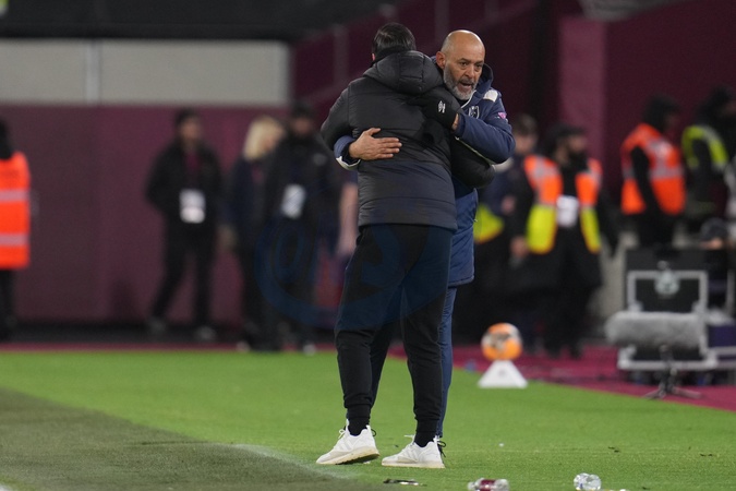 Nuno Espirito Santo manager of West Ham United and Julien Stephan manager of Queens Park Rangers at full time during the Emirates FA Cup Third Round match West Ham United vs Queens Park Rangers at London Stadium, London, United Kingdom, 11th January 2026, Credit:Harvey Murphy/News Images / Avalon