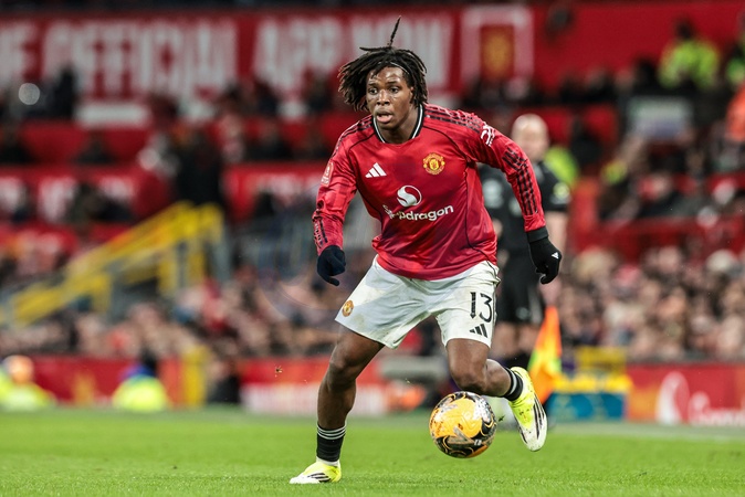 Patrick Dorgu of Manchester Untied breaks with the ball during the Emirates FA Cup Third Round match Manchester United vs Brighton and Hove Albion at Old Trafford, Manchester, United Kingdom, 11th January 2026, Credit:Mark Cosgrove/News Images / Avalon
