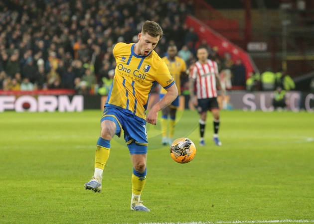 Jamie McDonnell of Mansfield Town controls the ball during the Emirates FA Cup Third Round match Sheffield United vs Mansfield Town at Bramall Lane, Sheffield, United Kingdom, 11th January 2026, Credit:Richard Bierton/News Images / Avalon