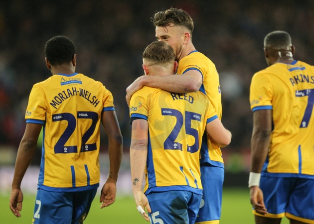 Louis Reed of Mansfield Town celebrates his goal to make it 1-2 during the Emirates FA Cup Third Round match Sheffield United vs Mansfield Town at Bramall Lane, Sheffield, United Kingdom, 11th January 2026, Credit:Richard Bierton/News Images / Avalon