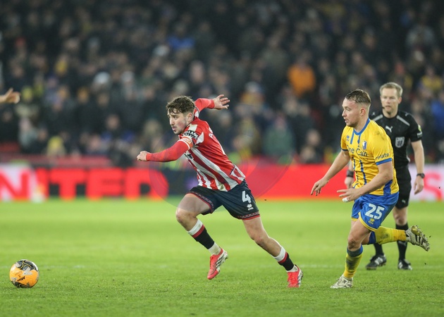 Oliver Arblaster of Sheffield United in action during the Emirates FA Cup Third Round match Sheffield United vs Mansfield Town at Bramall Lane, Sheffield, United Kingdom, 11th January 2026, Credit:Richard Bierton/News Images / Avalon