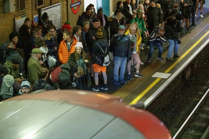 EDITORIAL USE ONLY' The annual No Trousers Tube Ride sees passengers in underwear travel across the London Underground. The event started in London in2009. It was inspired by New York's No Pants Subway Ride. which began in 2002. The event devides opinions on social media with most people seeing it as harmless fun, London, UK, 11 January 2026, Credit:Alex Day / Avalon