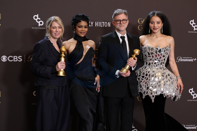 Sara Murphy, Teyana Taylor, Paul Thomas Anderson and Chase Infiniti at the 83rd Annual Golden Globe Awards held at The Beverly Hilton Hotel on January 11, 2026 in Beverly Hills, Los Angeles, California, United States., Credit:Xavier Collin / Avalon