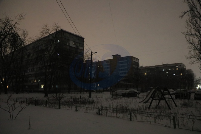 Apartment blocks with a few windows glowing stand out in the dark during a power cut caused by a Russian attack, Kyiv, January 9, 2026. On the night of January 9, Russian troops carried out a massive missile and drone attack on the Ukrainian capital, killing four people and leaving a large part of the city without electricity and heat., Credit:Yuliia Ovsiannikova / Avalon