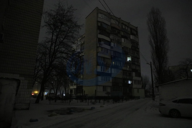 A few windows glow in the dark in a residential building during a power cut caused by a Russian attack, Kyiv, January 9, 2026. On the night of January 9, Russian troops carried out a massive missile and drone attack on the Ukrainian capital, killing four people and leaving a large part of the city without electricity and heat., Credit:Yuliia Ovsiannikova / Avalon