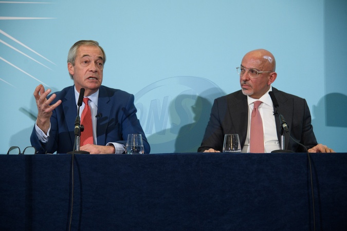 Reform UK Leader Nigel Farage and New recruit Nadhim Zahawi at a Reform UK Press Conference at IoD in London, England, UK on Monday 12 January, 2026 ., Credit:Justin Ng / Avalon