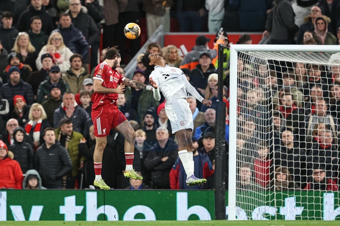 Vimal Yoganathan of Barnsley heads the ball clear of the goal during the Emirates FA Cup Third Round match Liverpool vs Barnsley at Anfield, Liverpool, United Kingdom, 12th January 2026, Credit:Ae Cosgrove/News Images / Avalon