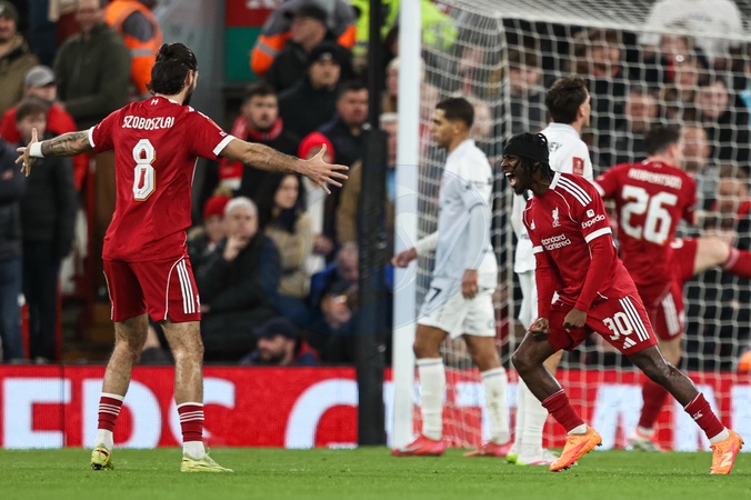 Jeremie Frimpong of Liverpool scores to make it 2-0 during the Emirates FA Cup Third Round match Liverpool vs Barnsley at Anfield, Liverpool, United Kingdom, 12th January 2026, Credit:Ae Cosgrove/News Images / Avalon