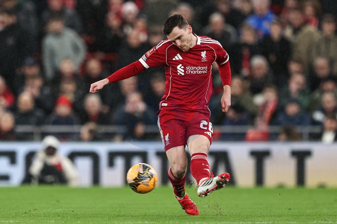 Andrew Robertson of Liverpool passes the ball during the Emirates FA Cup Third Round match Liverpool vs Barnsley at Anfield, Liverpool, United Kingdom, 12th January 2026, Credit:Ae Cosgrove/News Images / Avalon
