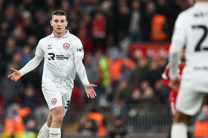 Jonathan Bland of Barnsley asks for the ball during the Emirates FA Cup Third Round match Liverpool vs Barnsley at Anfield, Liverpool, United Kingdom, 12th January 2026, Credit:Ae Cosgrove/News Images / Avalon
